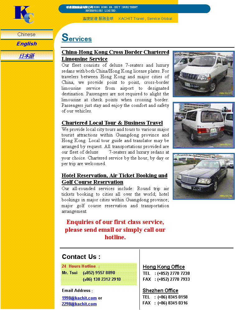 香港嘉捷旅運有限公司 HONG KONG KA CHIT INVESTMENT ENTERPRISES LIMITED. |